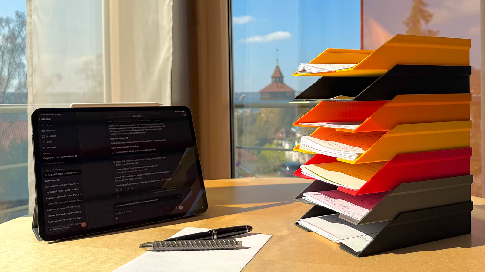 Vielleicht geht es Dir ähnlich. Nicht unbedingt mit Zetteln auf dem Schreibtisch – sondern mit Deinem digitalen Arbeitsplatz. Mit den zwanzig offenen Browser-Tabs. Mit den fünf KI-Tools, die Du irgendwann mal getestet hast. Mit dem Content, der seit Wochen in Deinem Kopf ist, aber nicht auf LinkedIn.