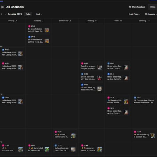 Jede Woche ein Post pro Säule = Struktur ohne Langeweile.